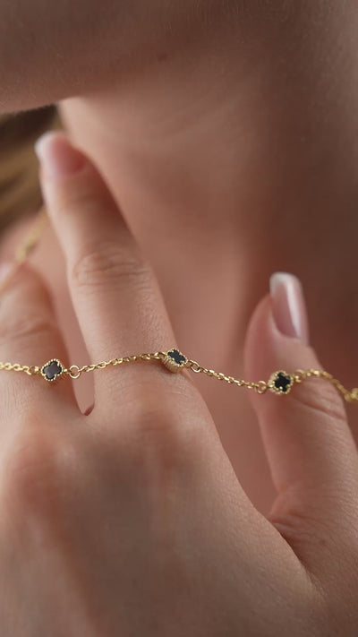 SİYAH MİNİ YONCA KOLYE | 925 GÜMÜŞ